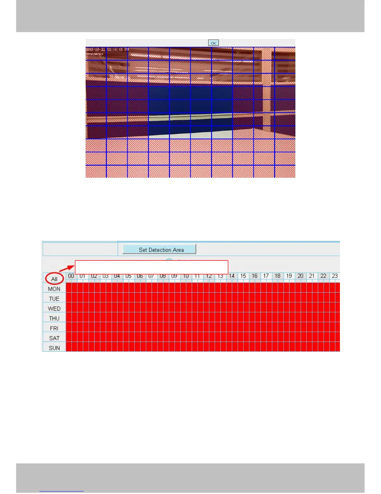 of TUE turns to red, that means during Tuesday whole day, when something moving in the detection area, the