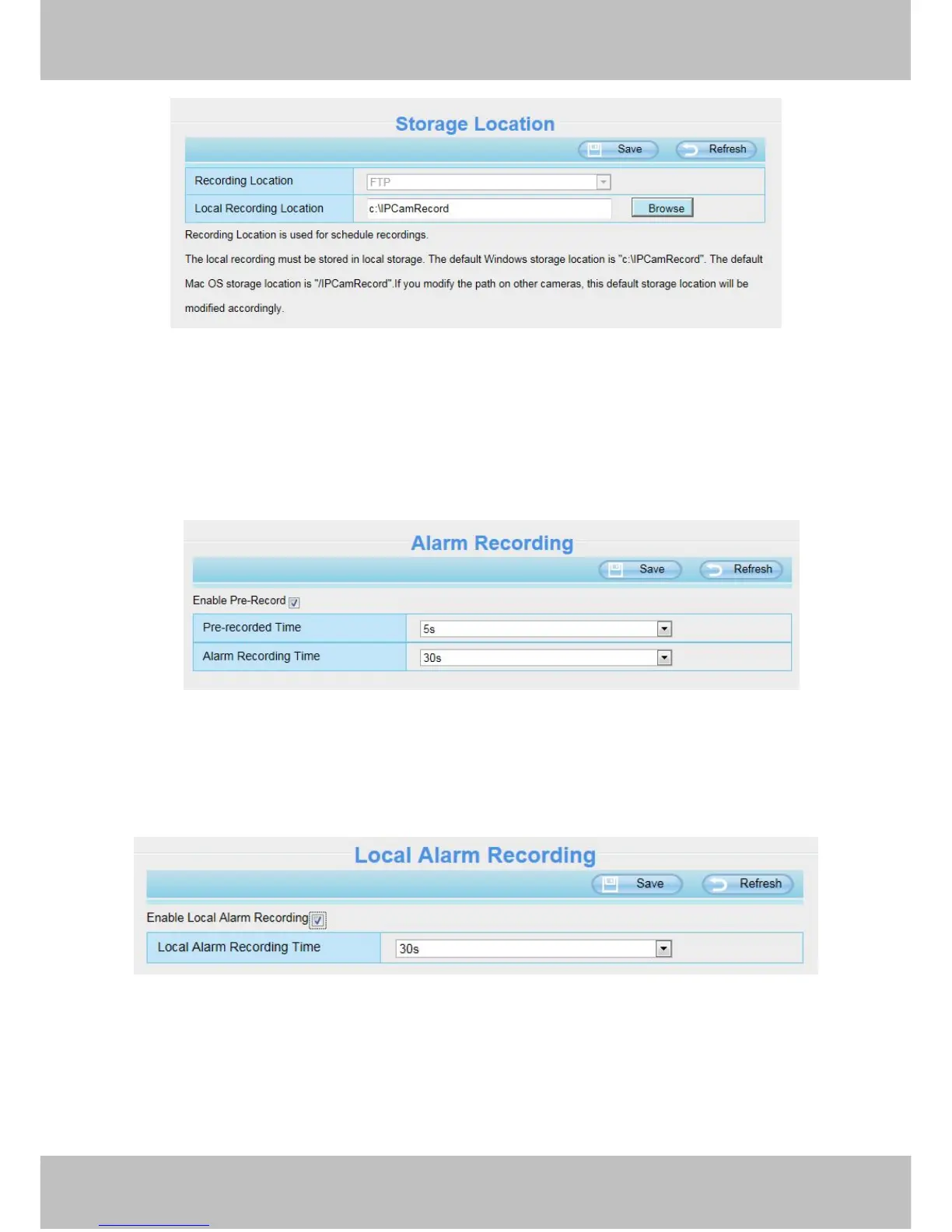 Local Recording Location: For Windows OS, the manual recording path is C:/ IPCamRecord, you can