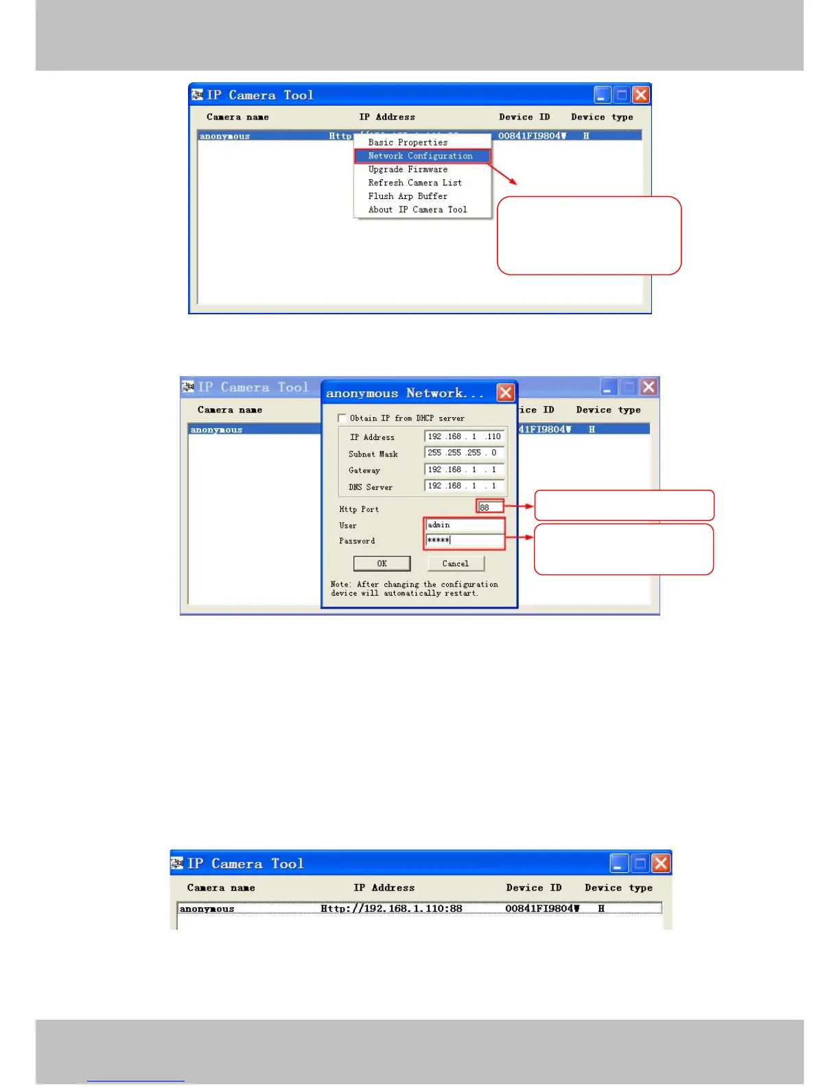 address is now fixed at a static IP address of http://192.168.1.110:88. This IP address will not change even if