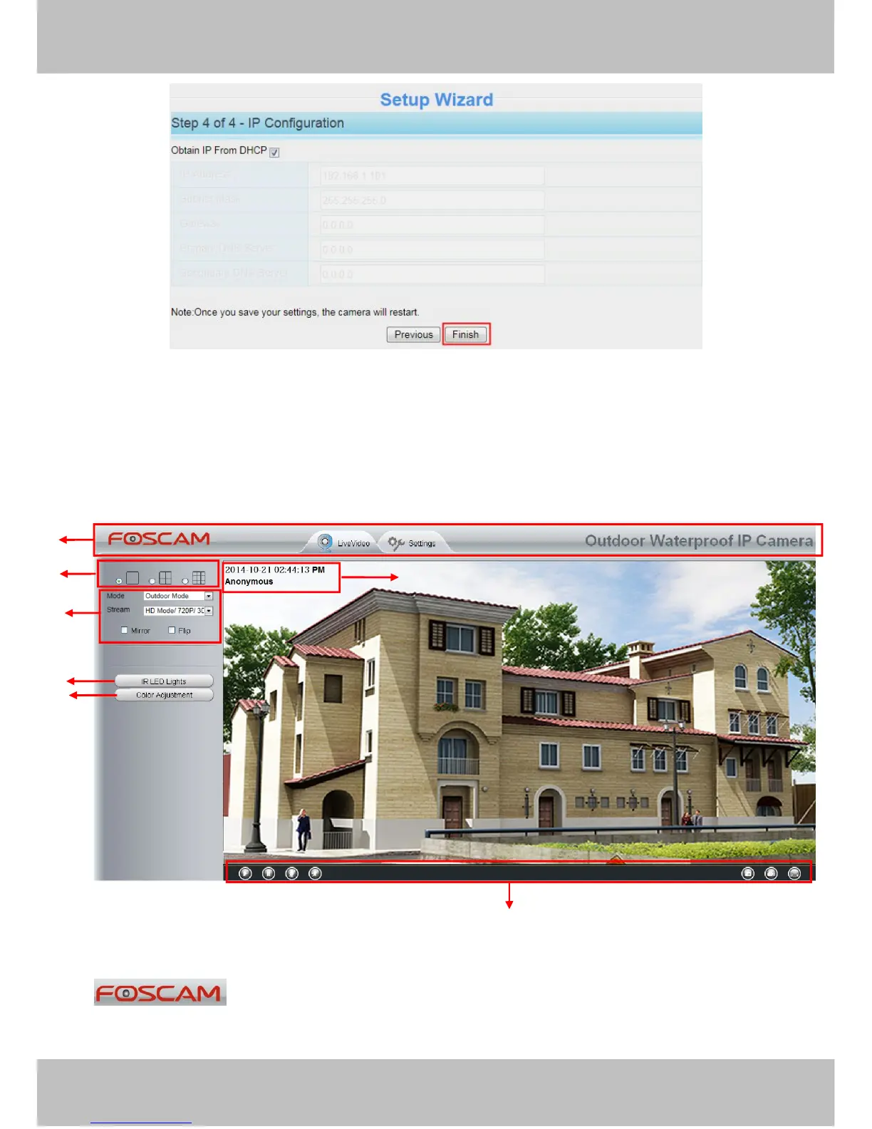 Section1 FOSCAM Logo/ Live Video / Settings buttons