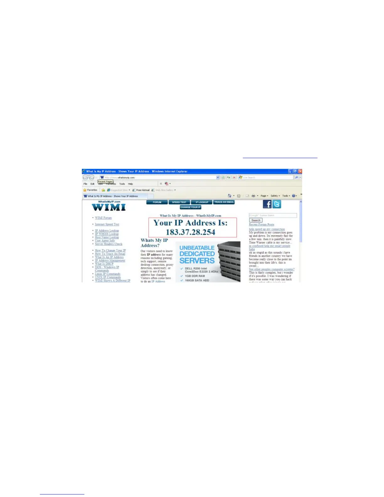 To obtain your WAN IP address, enter the following URL in your browser: http://www.whatismyip.com.The