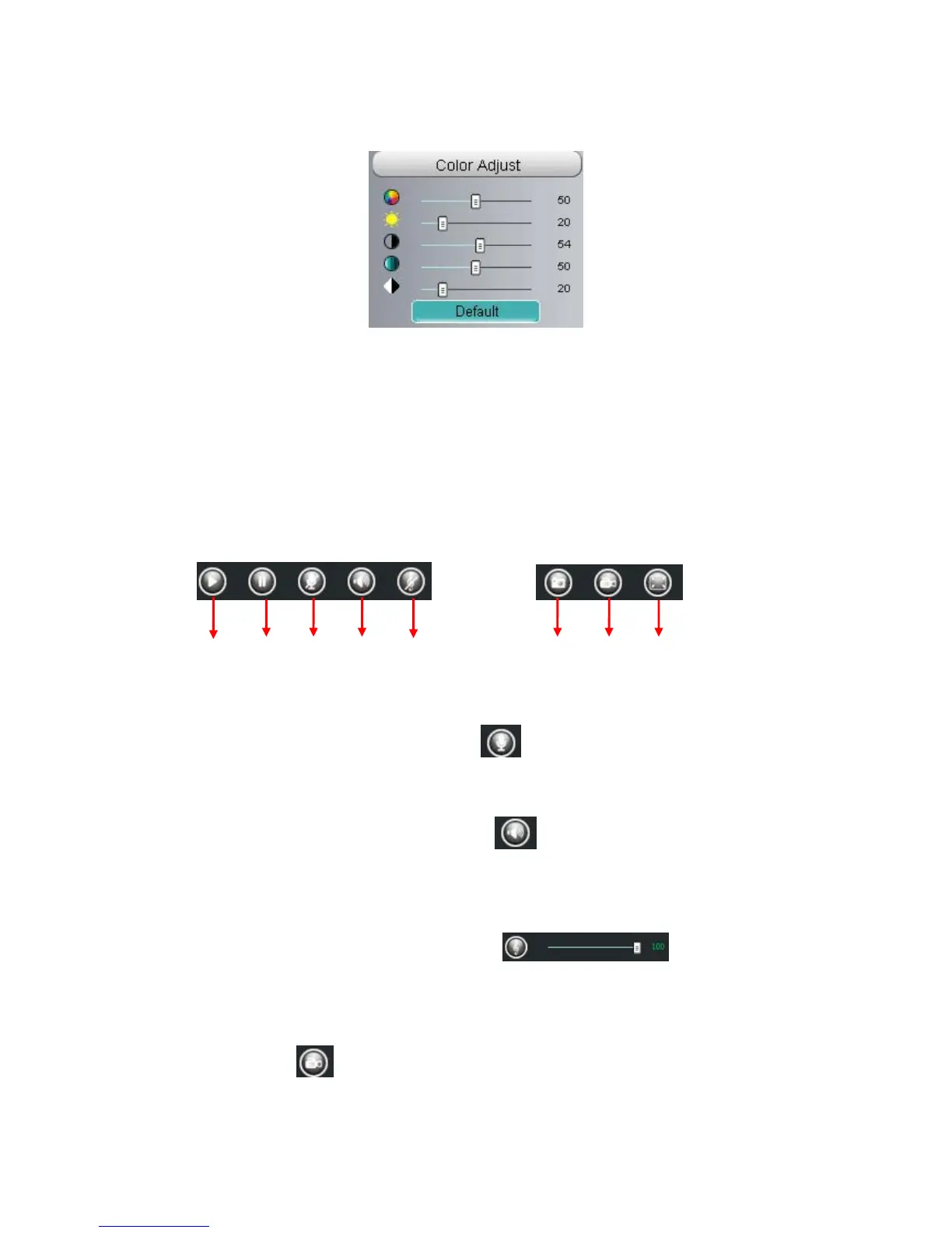 Section9 Play / Stop / Talk / Audio / Snap / Record / Full screen button