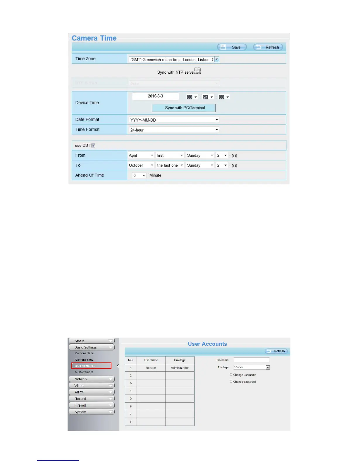 Sync with NTP server: Network Time Protocol will synchronize your camera with an Internet time server.