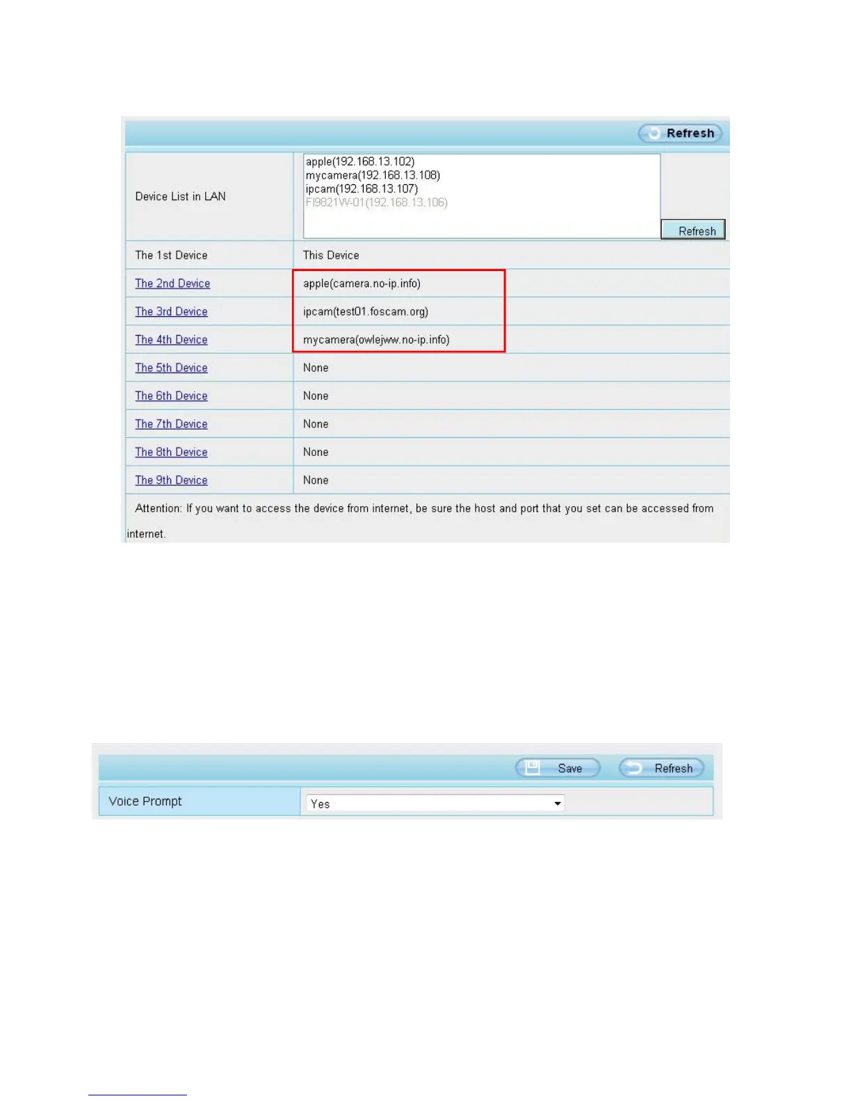 NOTE: Here the Host must be entered as the second camera's DDNS domain name, not its LAN IP.