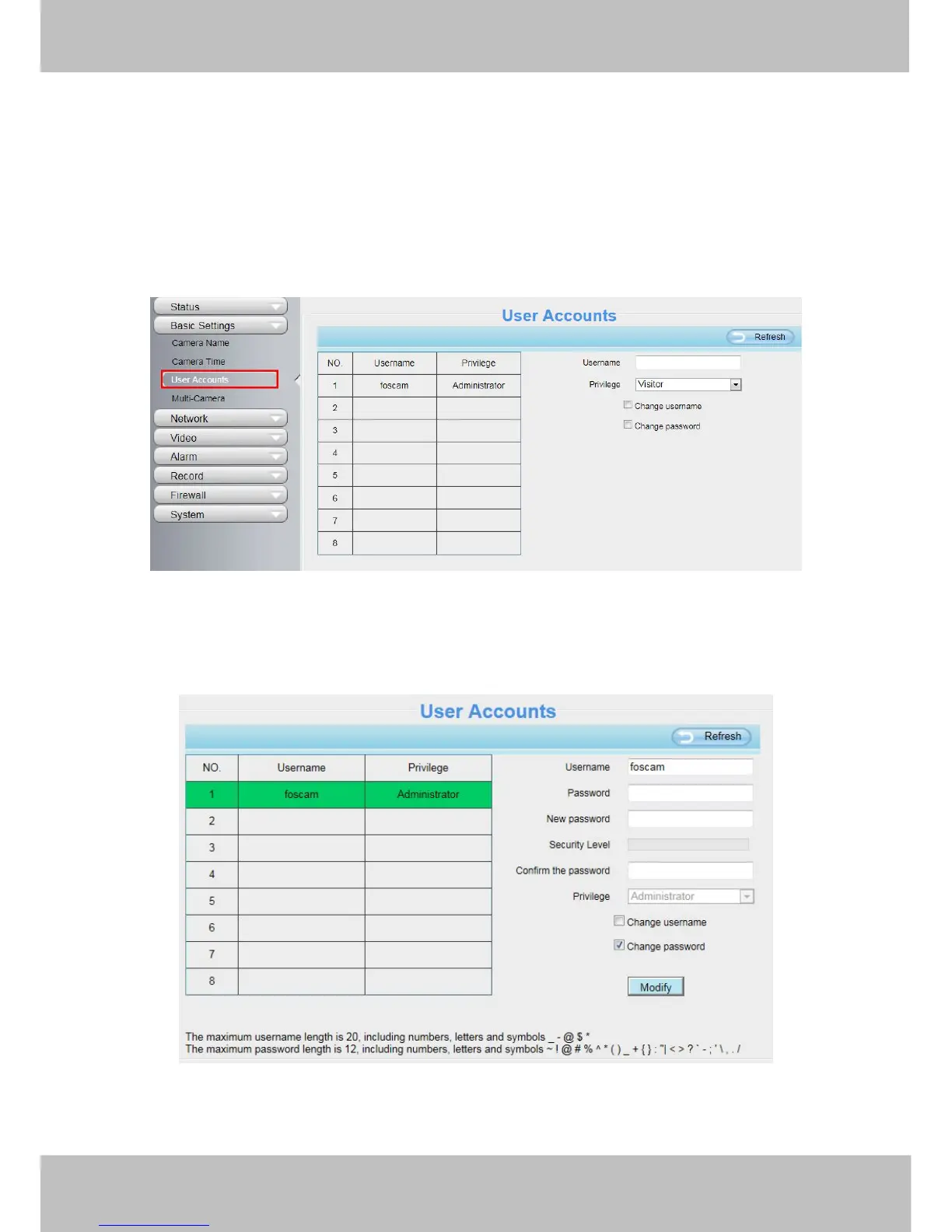 Foscam FI9805P - User Accounts