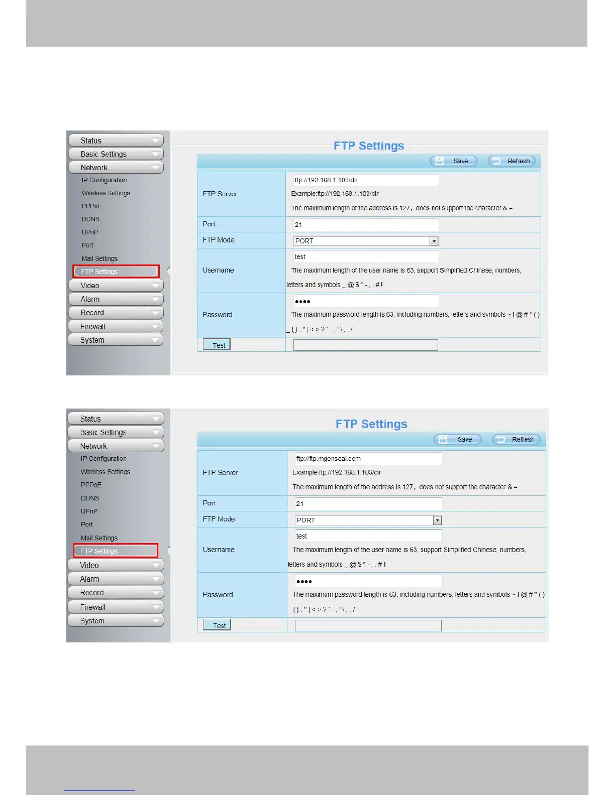 If you want to upload record files and images to your FTP serveryou can set FTP Settings.