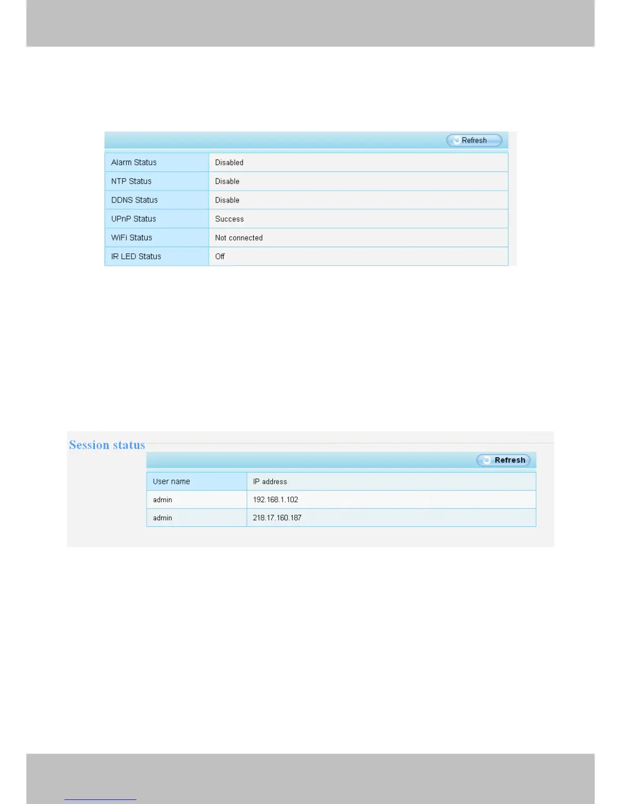 Session status will display who and which IP is visiting the camera now.