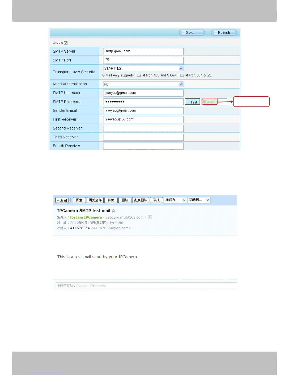 receive a test mail.