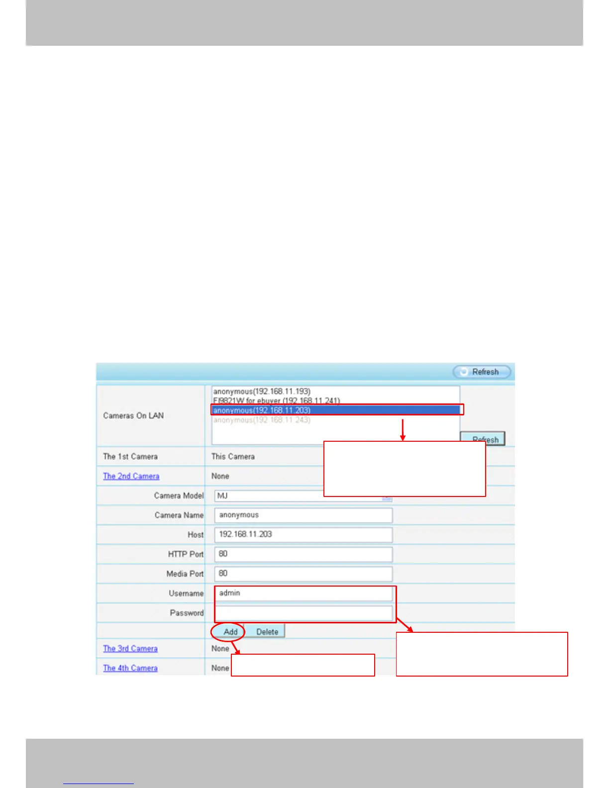 time. This page you can both add FOSCAM MJPEG and H.264 series cameras to the first