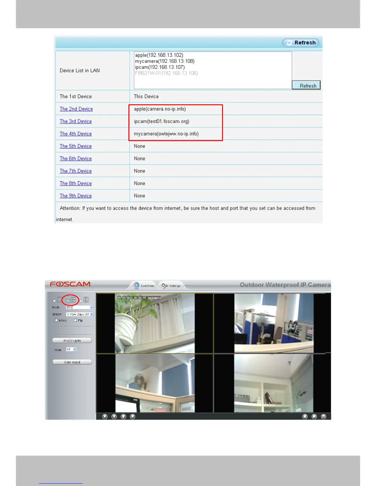When you are away from home, you can use the first camera s DDNS domain name and port to