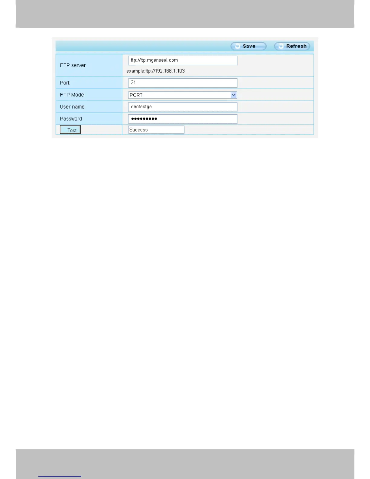 Port : Default is port 21. If changed, external FTP client program must change the server