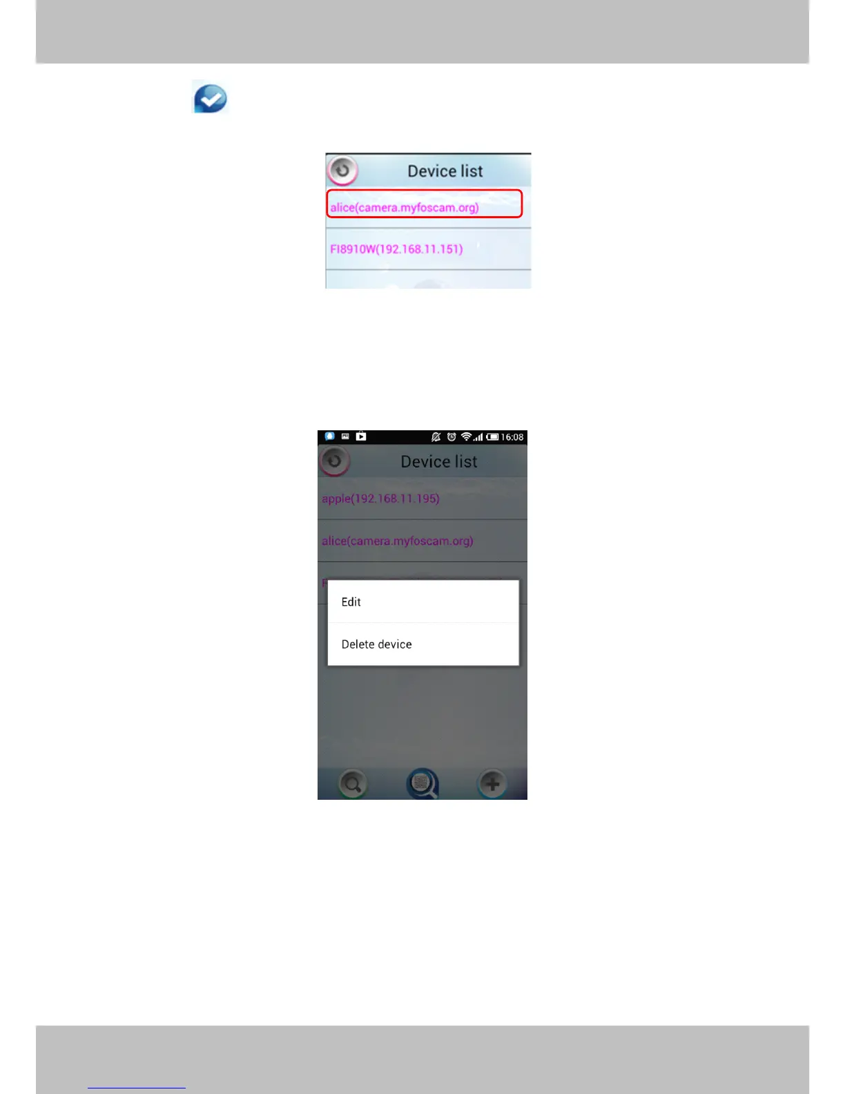 Select one IP address in the Device List and press it for a moment, it pop up the following