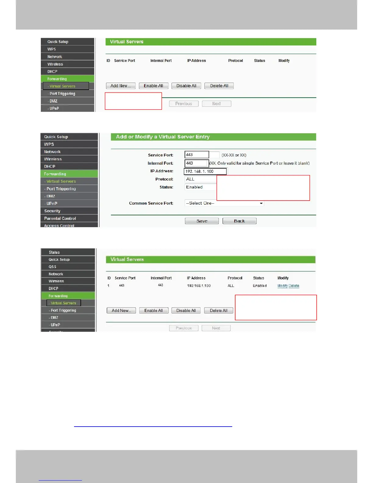 Port Forwarding setup.