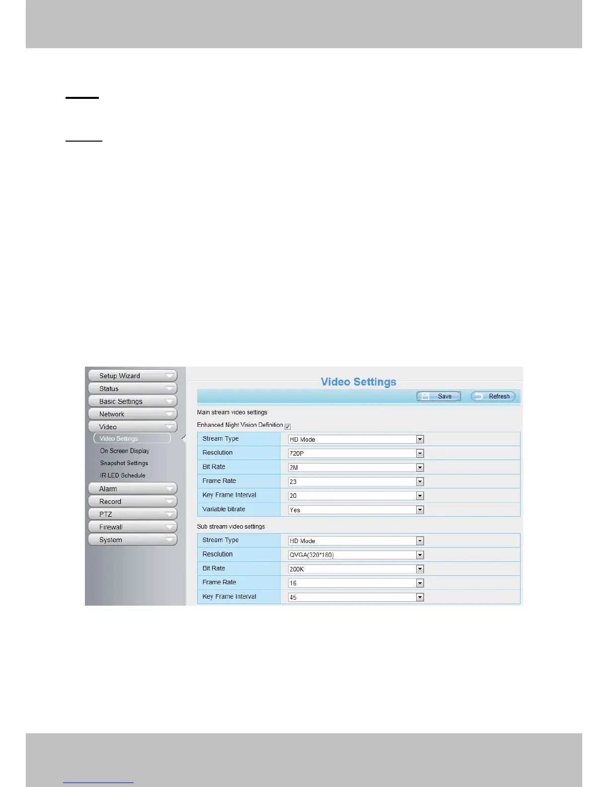 / Resolution / Maximum frame rate/ Bit rate. (Different models support different specific mode. )
