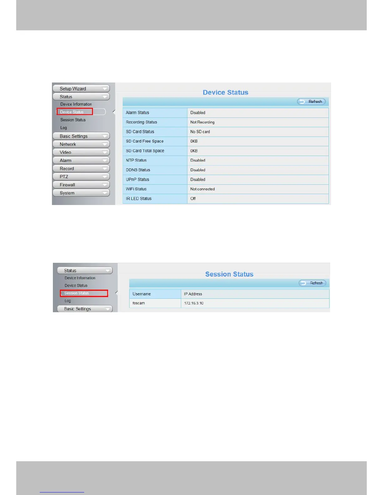 Session status will display who and which IP is visiting the camera now.
