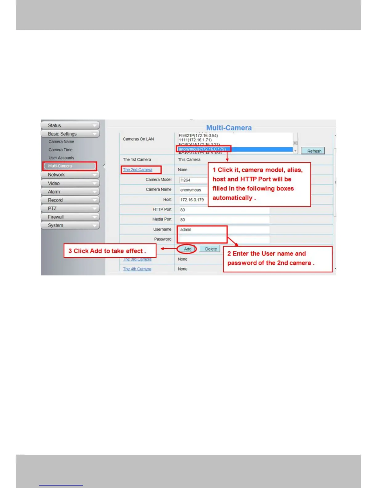 Add cameras in LAN