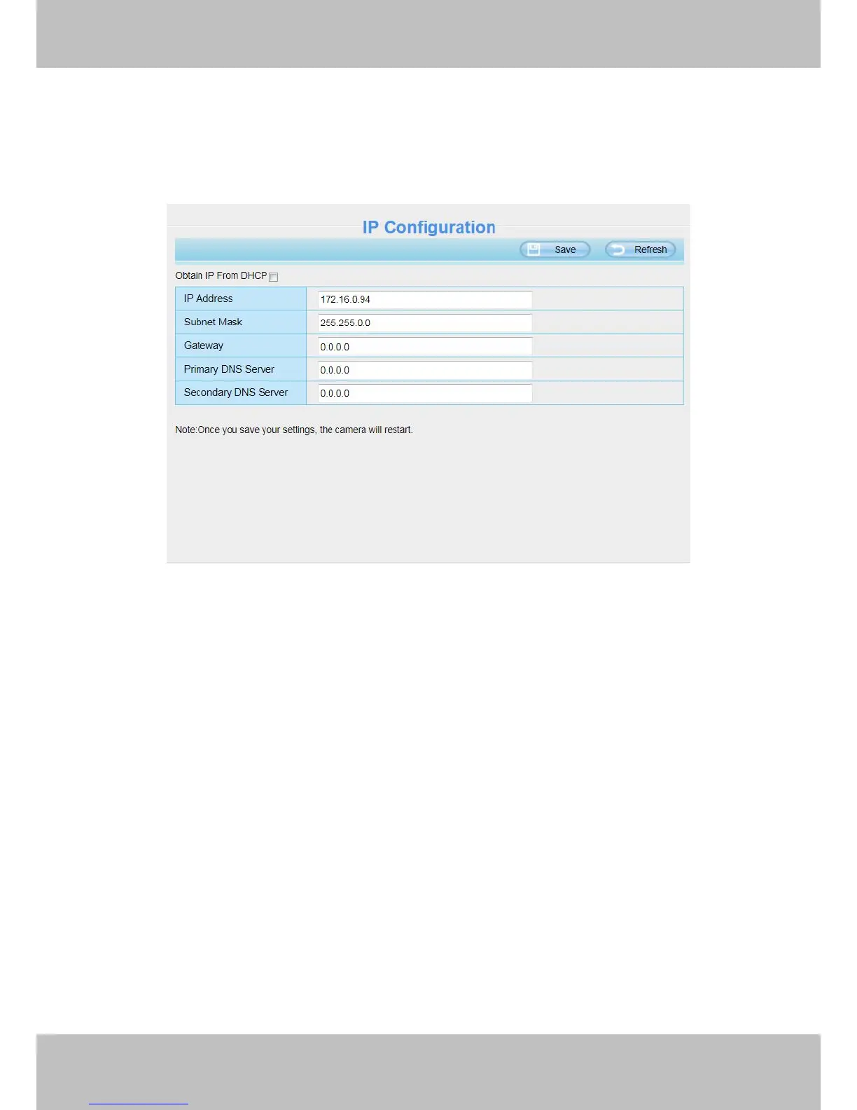 If you want to set a static IP for the camera, please go to IP Configuration page. Keep the camera in the same