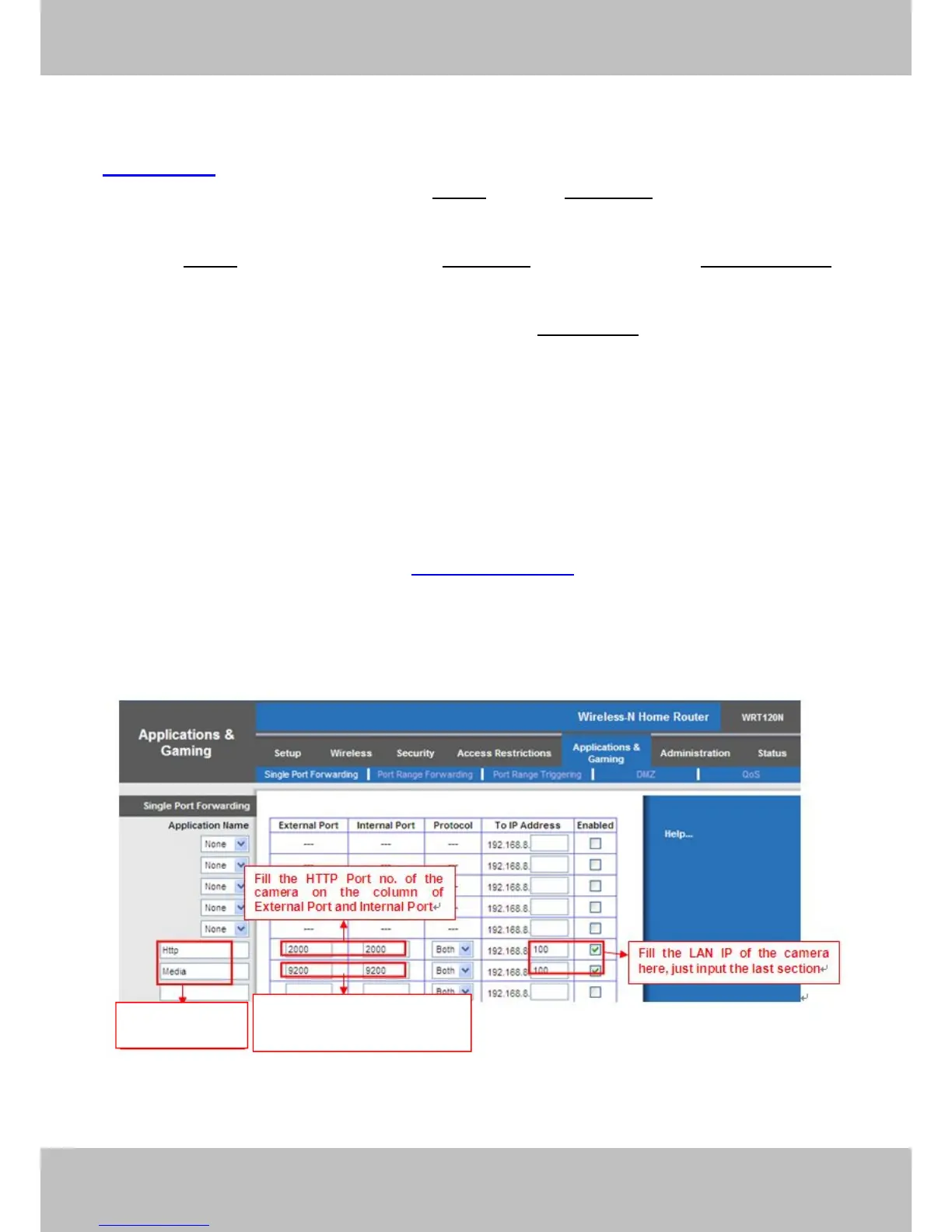 Secondly, Create a new column by LAN IP address & HTTP Port No. of the camera within the router showed