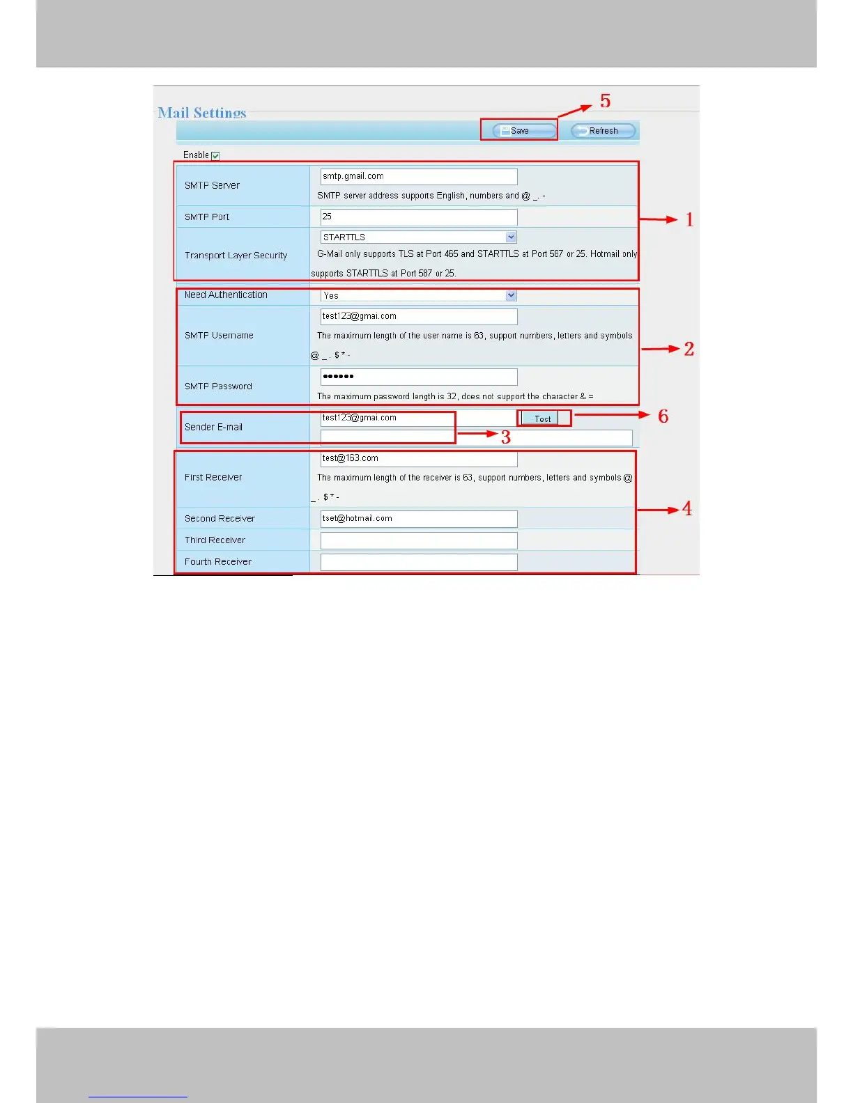 4----- Receiver Mailbox for receiver need not support SMTP,you can set 4 receivers