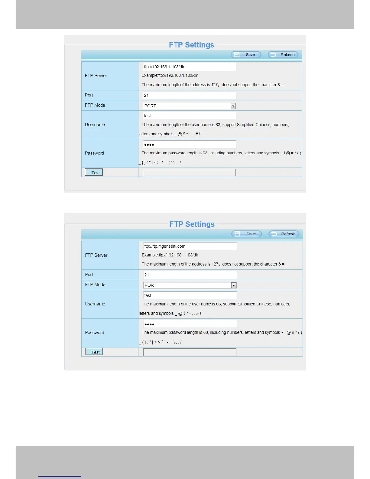 Port: Default is port 21. If changed, external FTP client program must change the server connection port