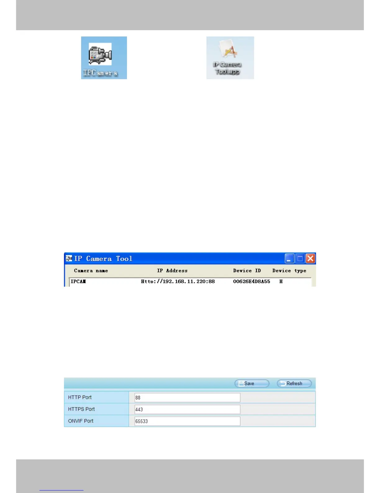 The default HTTP port NO. is 88. Double click the IP Camera Tool icon to run, and it should find the camera’s