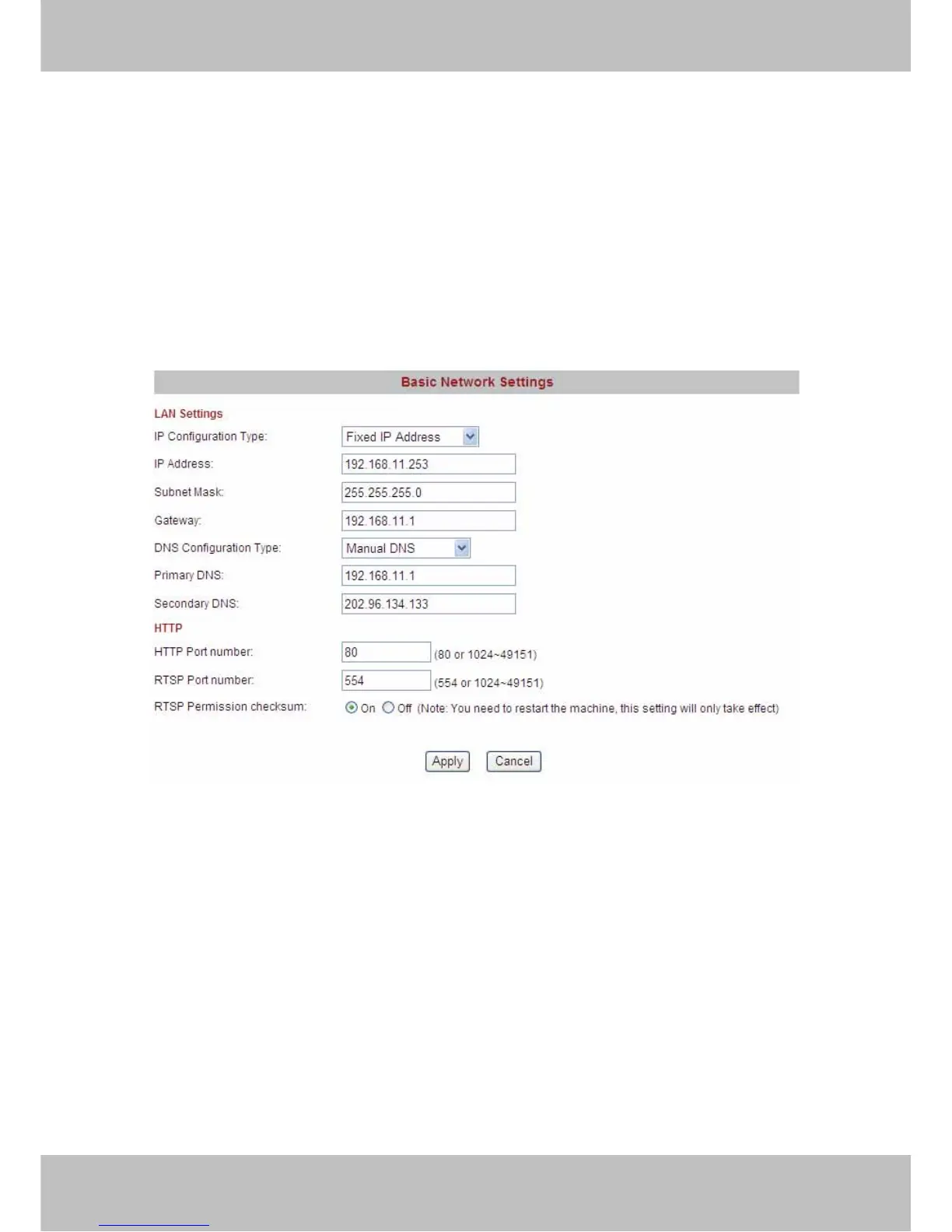 IP Configuration Type contains two types: Fixed IP Address and Dynamic IP Address. Set the