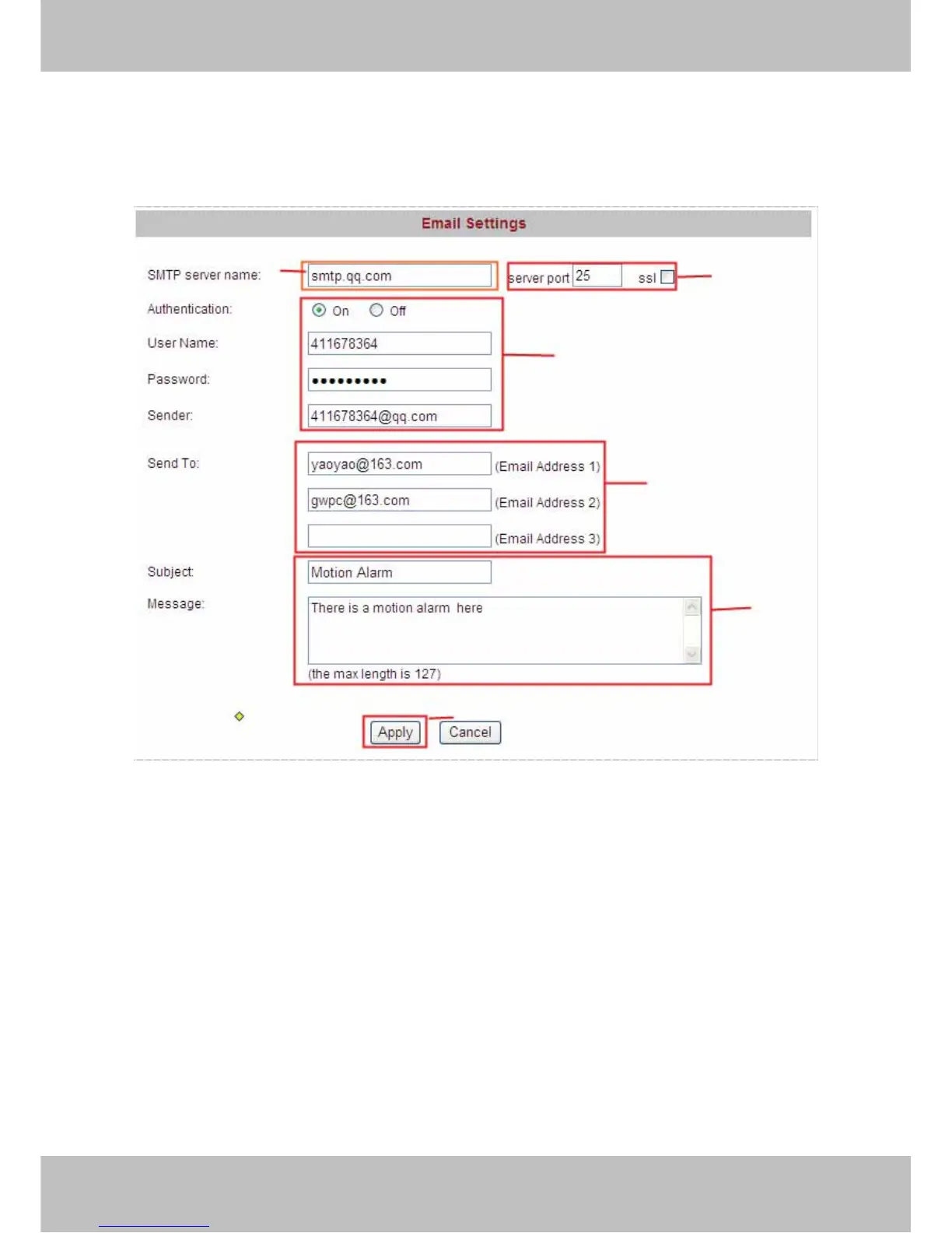 If you want the camera to send emails when motion has been activated, Email Settings will