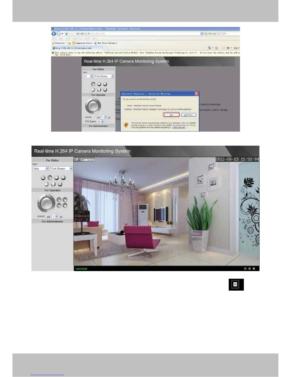 NOTE: If you could not view living video after running the ActiveX, only a red cross