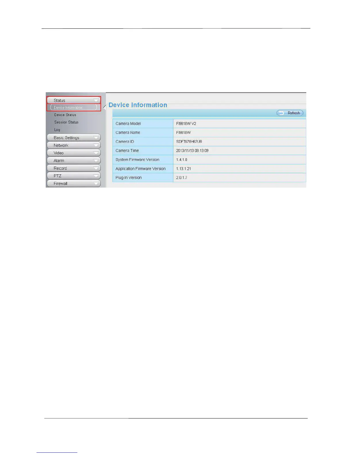 Camera ID: Display the wired MAC address of your camera. For example Device ID is 000C5D00008,