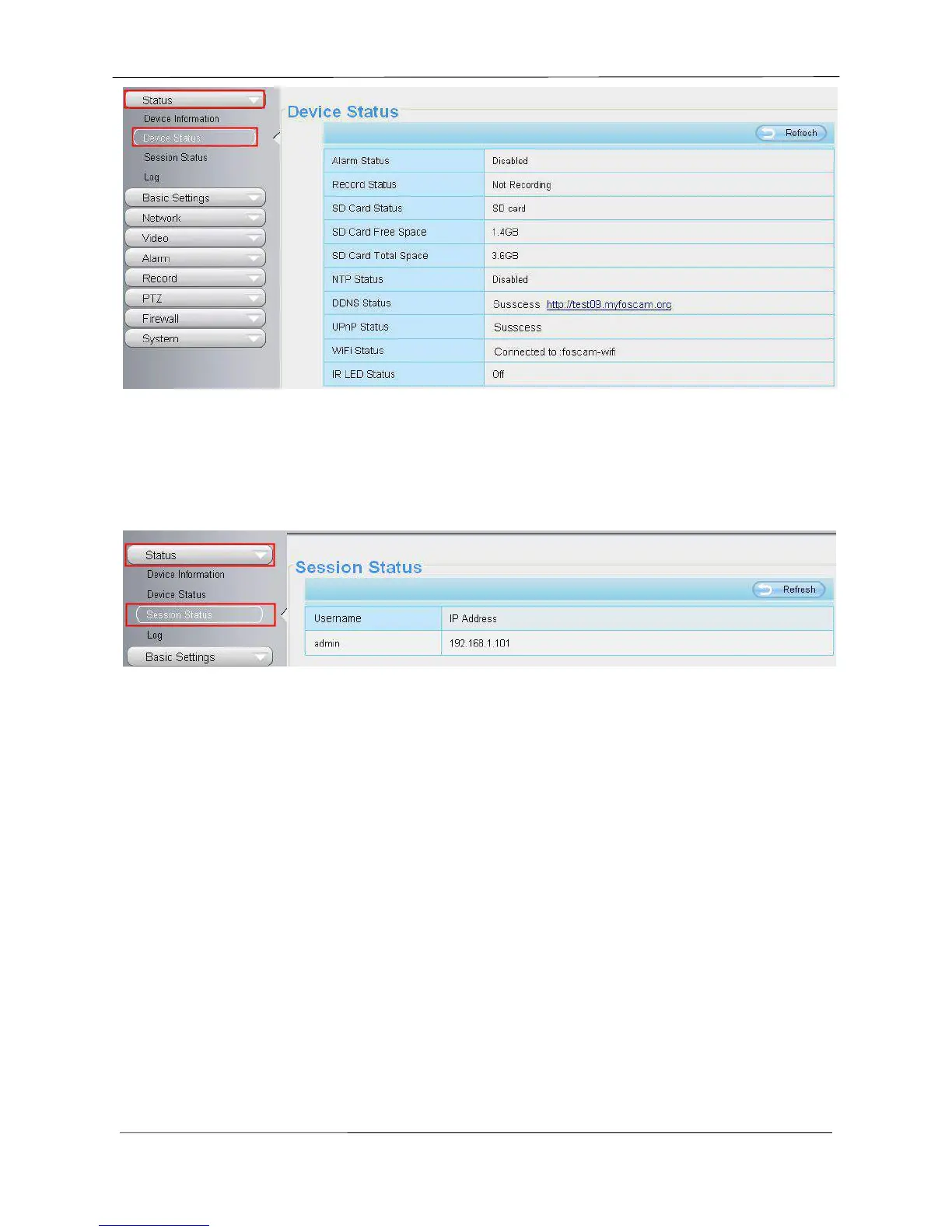 Foscam FI9821EP - Session Status