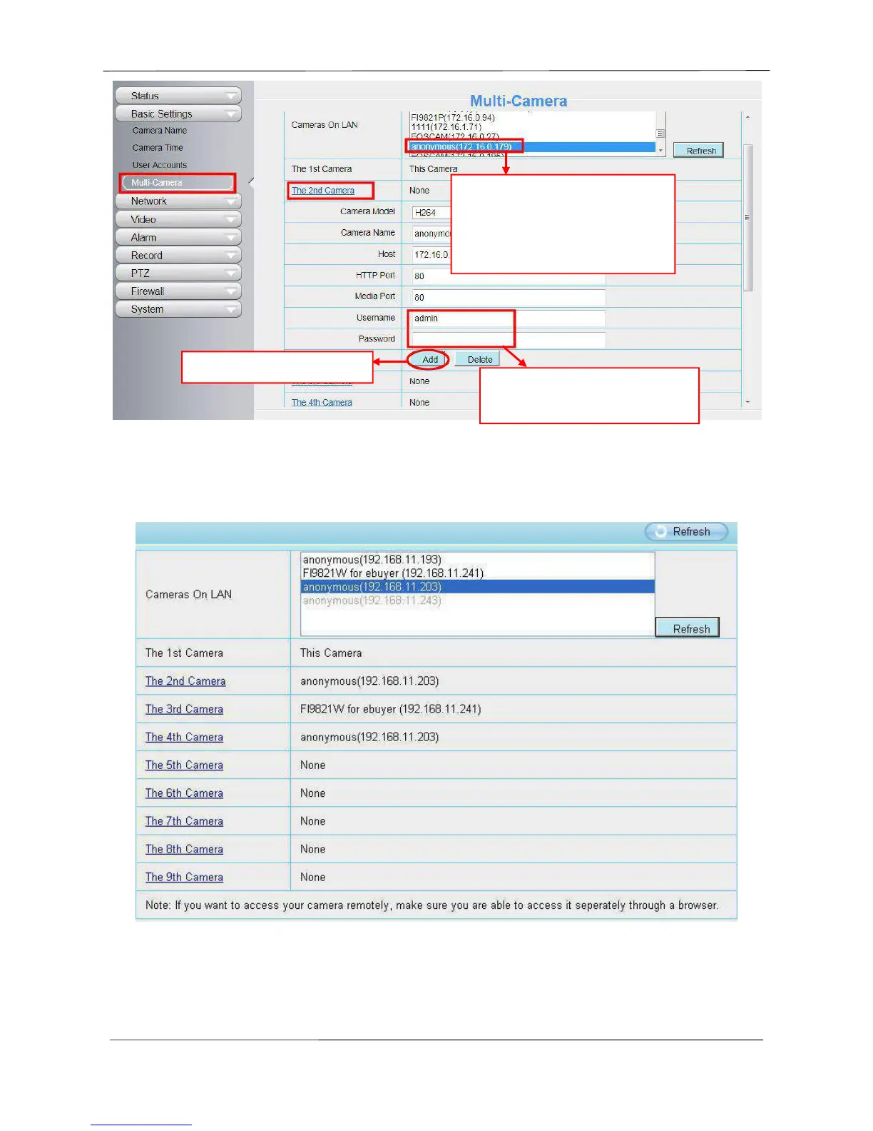 password of the 2nd camera.