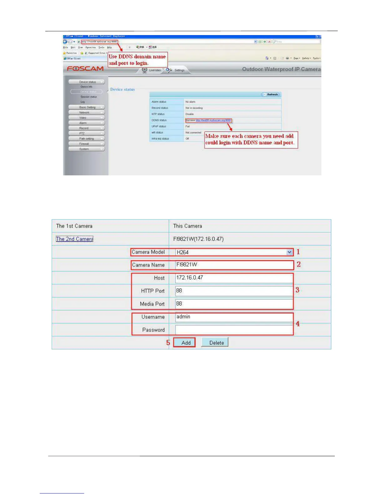 3 ---- Fill in the 2nd camera’s DDNS host not LAN IP