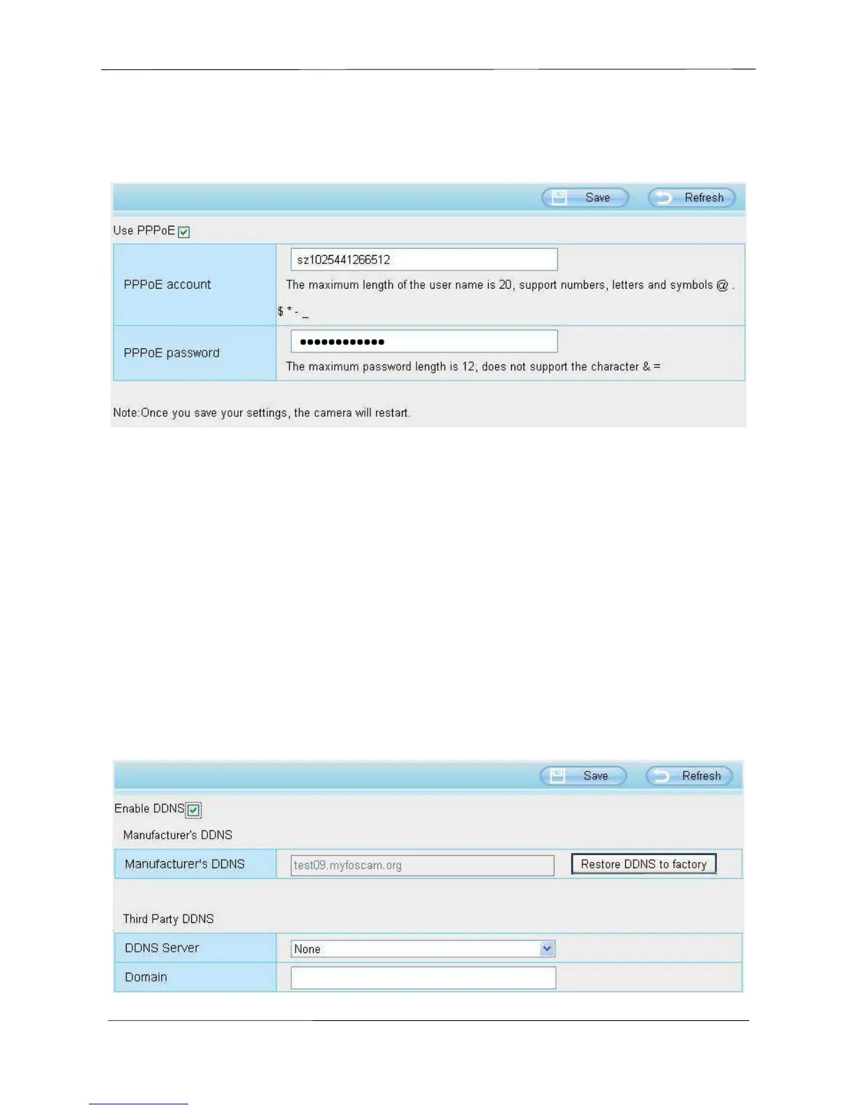 Here take test09.myfoscam.org for example. Go to option of DDNS on the Settings->Network panel,