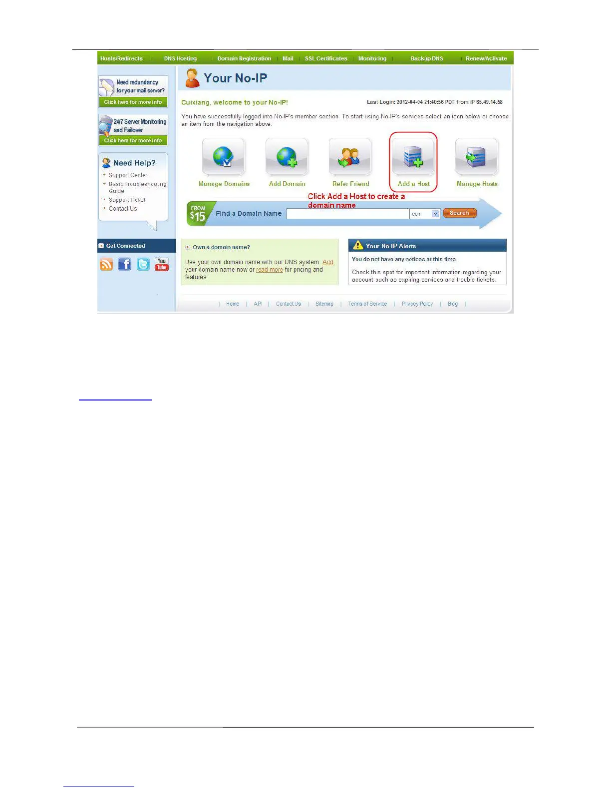 Please create the domain name step by step according to instructions on www.no-ip.com
