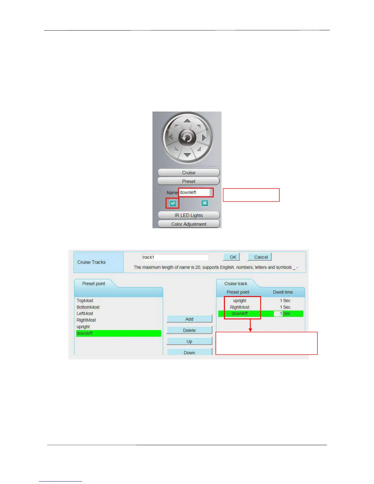 After add the cruise track, back to the surveillance window, click Cruise, her you can see all cruise tracks
