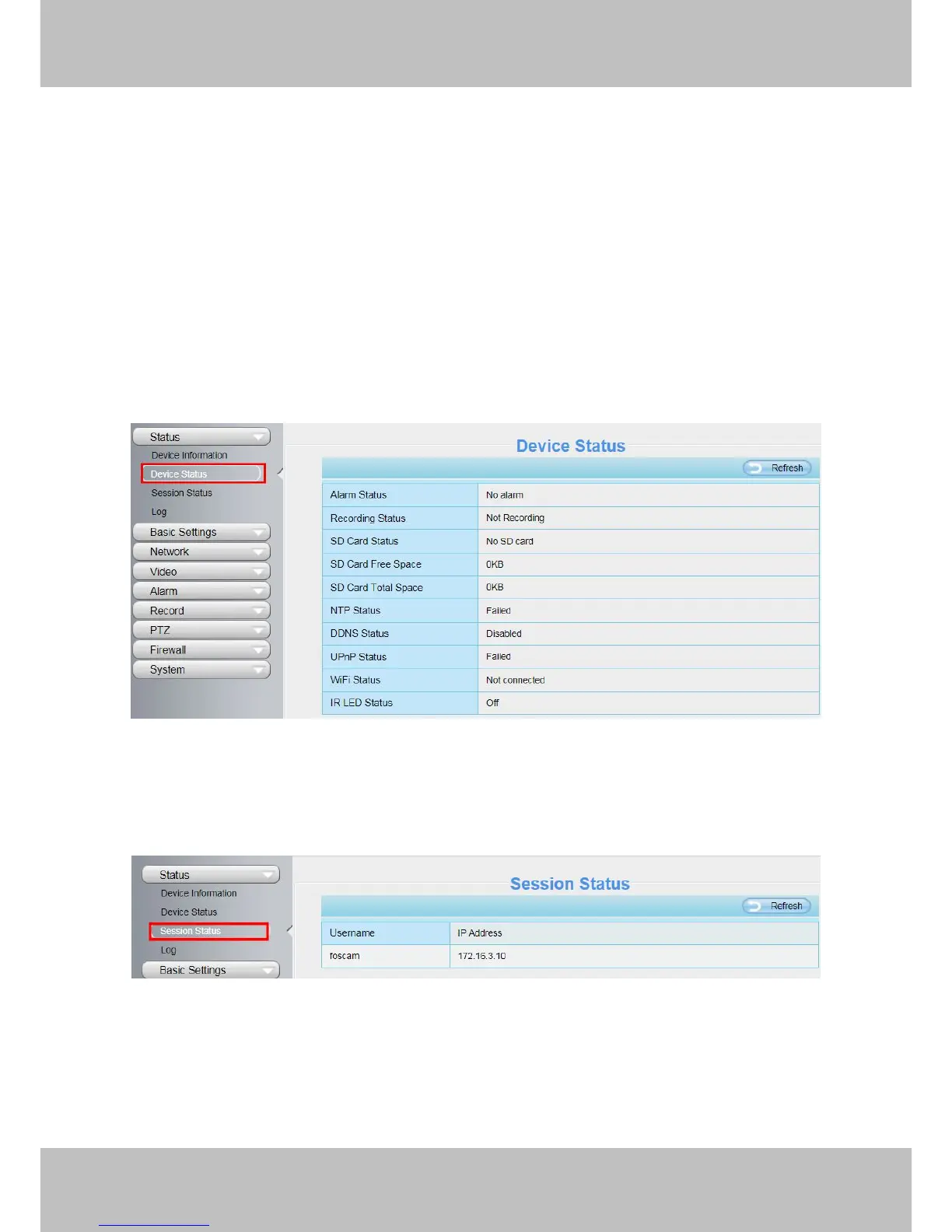 On this page you can see device status such as Alarm status/ Record Status ,DDNS status ,WIFI status and so