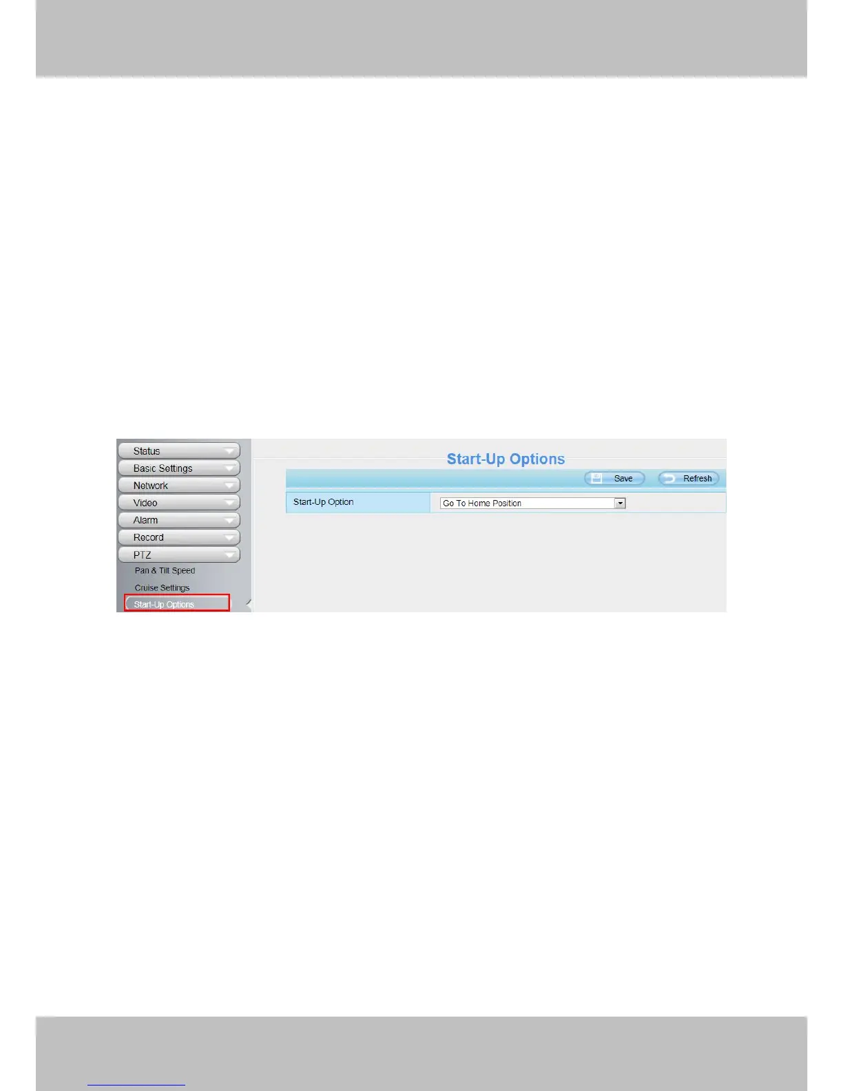 Disable Start-Up: When rebooting, the camera will not pan / tilt.