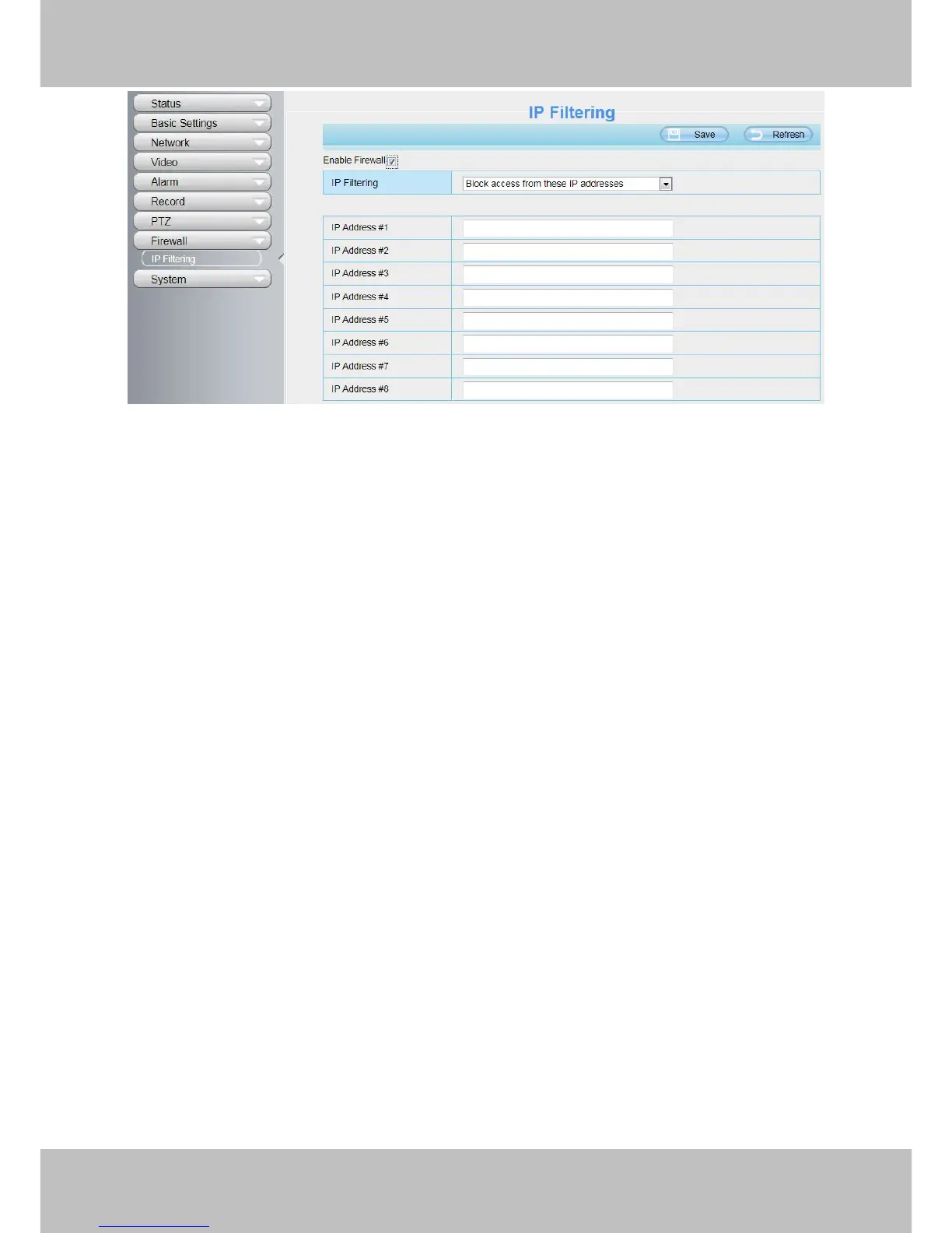 Network Camera. If you select Block access from these IP addresses, only those clients whose IP