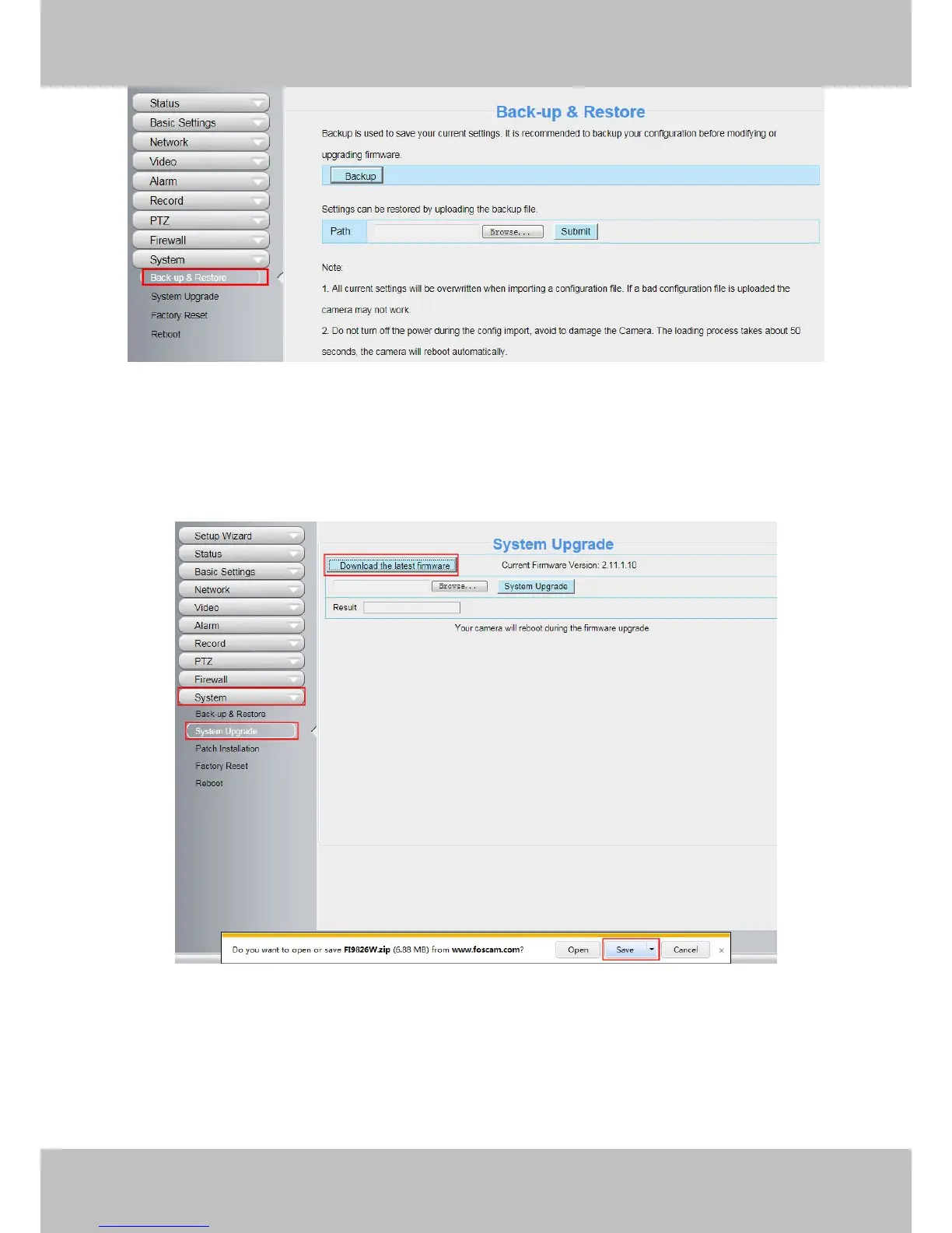 Foscam FI9821P - System Upgrade