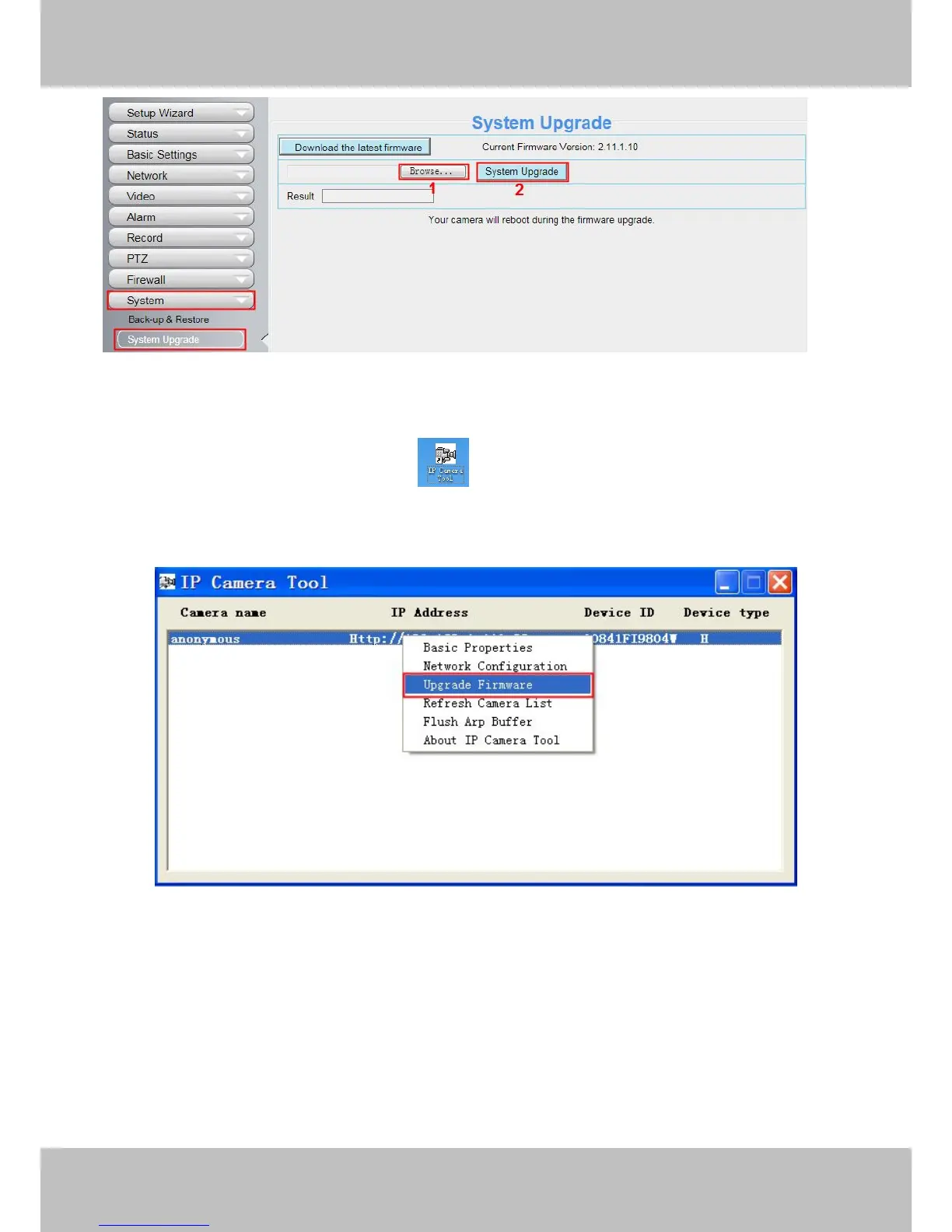 Double click the IP Camera Tool shot icon , select the Camera IP that you want to upgrade the