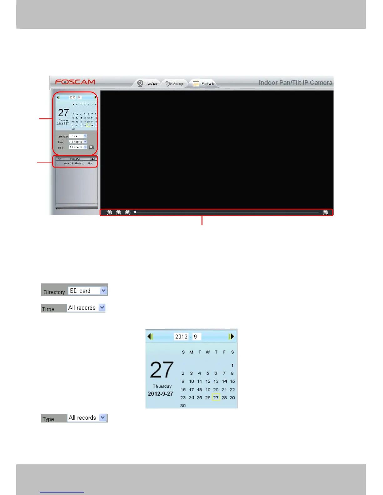 On this page you can view the record files stored in the SD card.