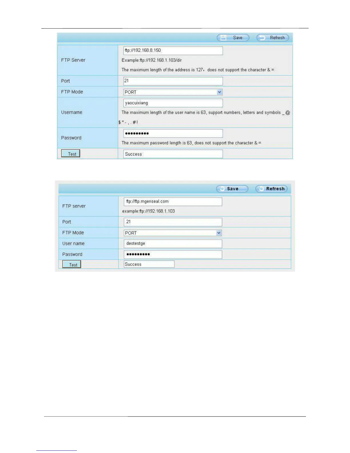 Port: Default is port 21. If changed, external FTP client program must change the server connection port
