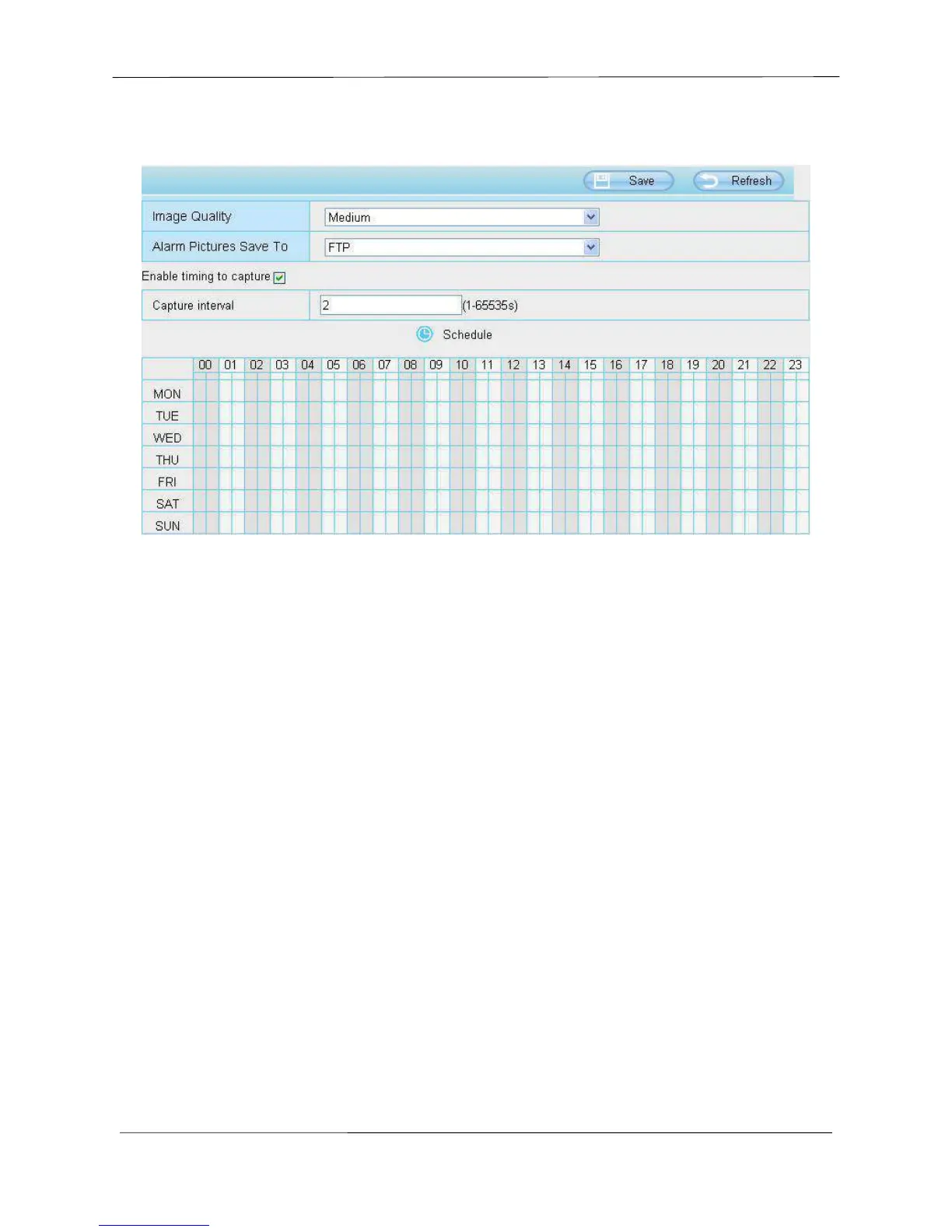 all column of TUE turns to red, that means during Tuesday whole day, the camera will capture.