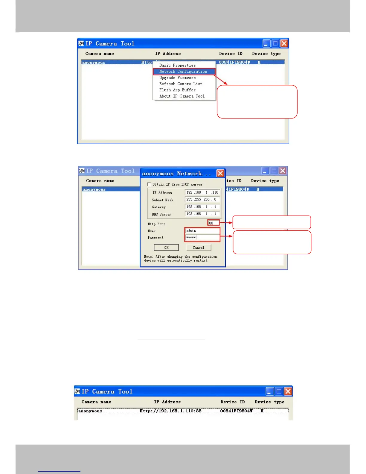 was changed to 2000, so we see http://192.168.8.102:2000 in IP Camera Tool. Also, the LAN IP address is