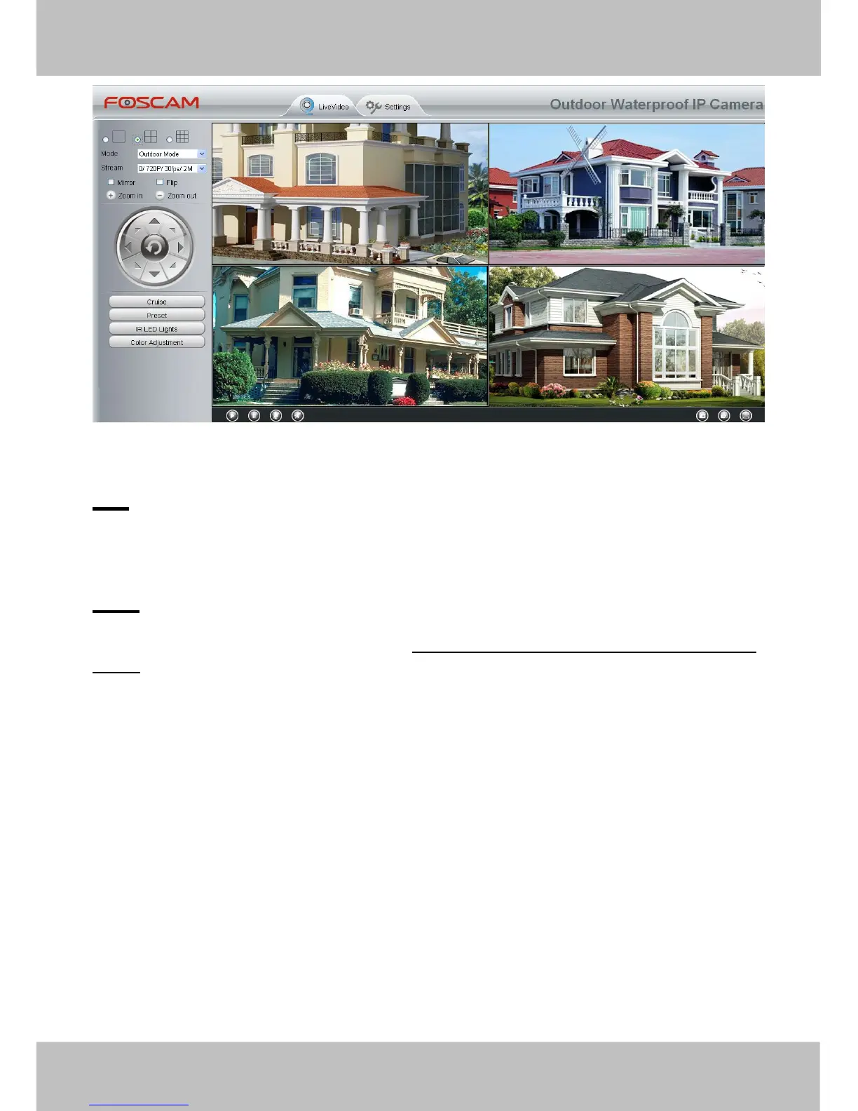 Section3 Mode/ Stream / Mirror/ Flip / Zoom in / Zoom out buttons