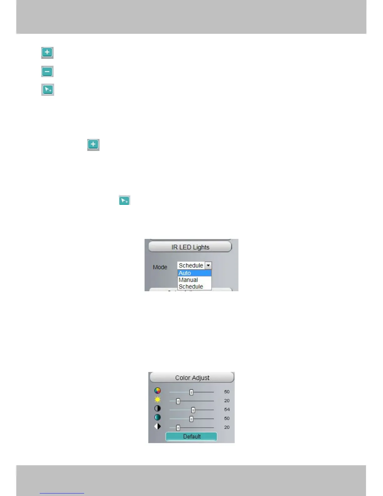 Click Infra led and there are three modes to adjust the infrared led: Auto, Manual and Schedule.