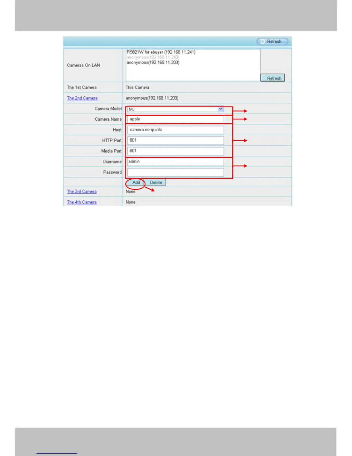 3----- Fill in the 2nd camera’s DDNS host not LAN IP