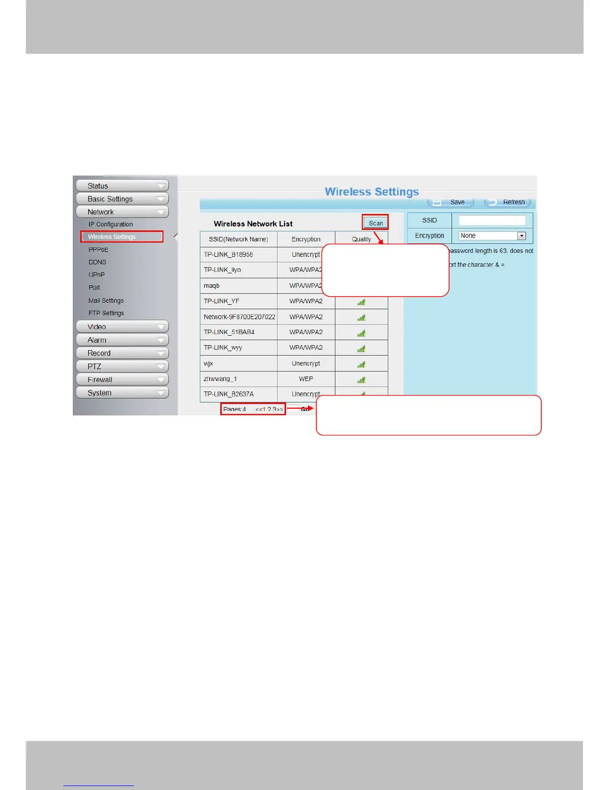 Click the Scan button and the camera will detect all wireless networks around the area. It should also display