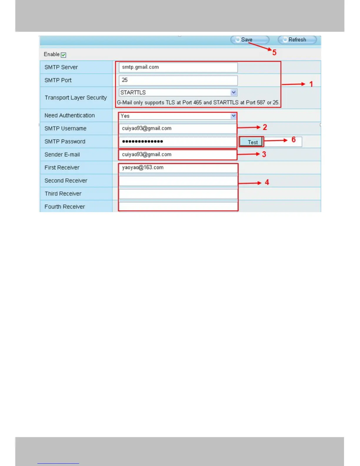 1-----SMTP Server/ Port /Transport Layer Security Enter SMTP server for sender. SMTP port is usually set