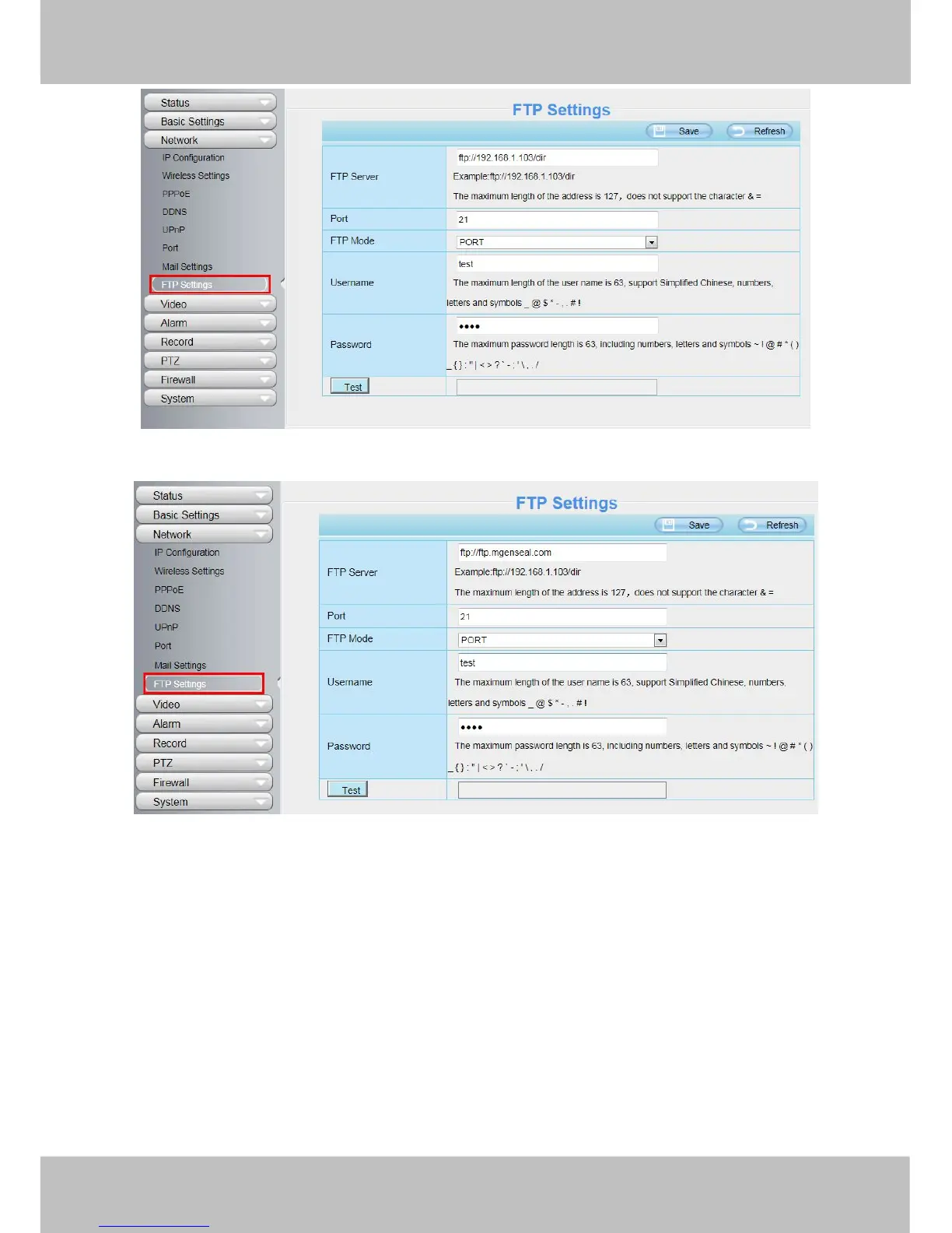 If you have an FTP server which you can access on the internet, you can set as Figure 4.44